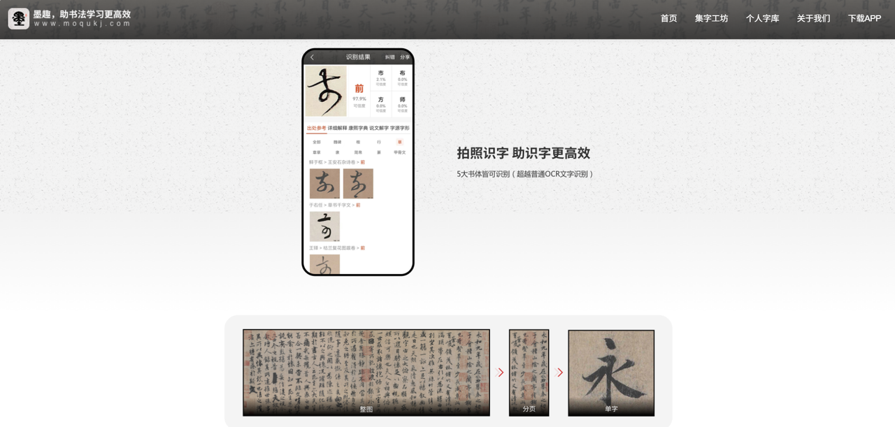 墨趣书法是我在查找碑帖资源时偶然发现的一个宝藏免费书法字体下载网站,内置 2000+ 经典碑帖资源,120万+ 张高清碑帖图片。这个网站收录了大量免费商用书法字体,方便用户下载学习使用,字体版权也做了清晰标注,明确了可使用范围。另外,该网站的书法字体资源涵盖古今,既有颜真卿、柳公权等名家书法的数字化字体,也有现代设计师原创的免费书法字体,风格多样,任君选择。如果你不仅需要免费书法字体下载,还想深入了解书法文化、提升字体运用技巧,这款软件我想会是很好的选择。