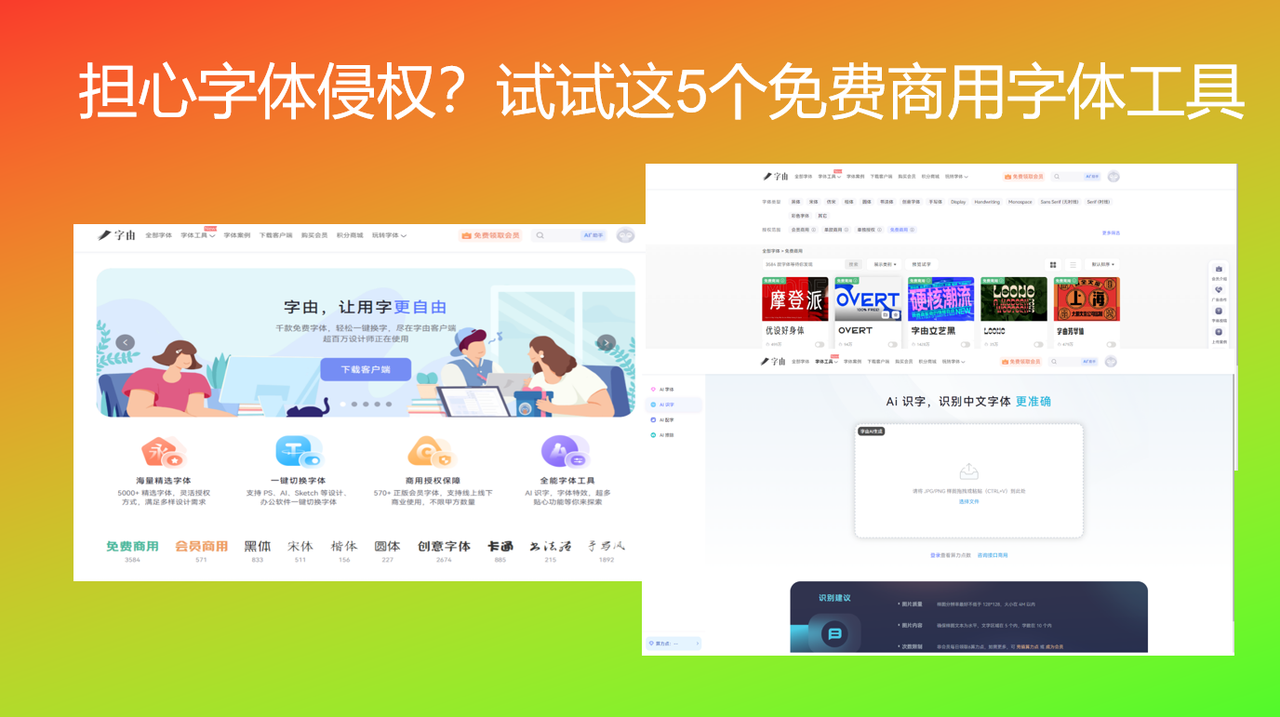 做设计的最怕什么?不是没灵感,也不是要面对甲方的反复改稿,而是辛辛苦苦做完了作品以后才被人告知作品里的字体并不是免费使用,是有版权的。网上搜来的字体还要查半天有没有是授权,就算有授权了还不一定能够商用,一般情况就是好不容易找到一款合适的,下载下来才发现“仅限个人使用”。但是总的来说,字体侵权这件事只需要找对字体平台就可以避免,也就是用好免费商用字体生成工具。今天我就筛选了 5 个亲测可用的免费商用字体生成工具,从国产神器字由到国外精选平台,每个都标明了字体数量和授权方式,再也不用担心授权问题了!