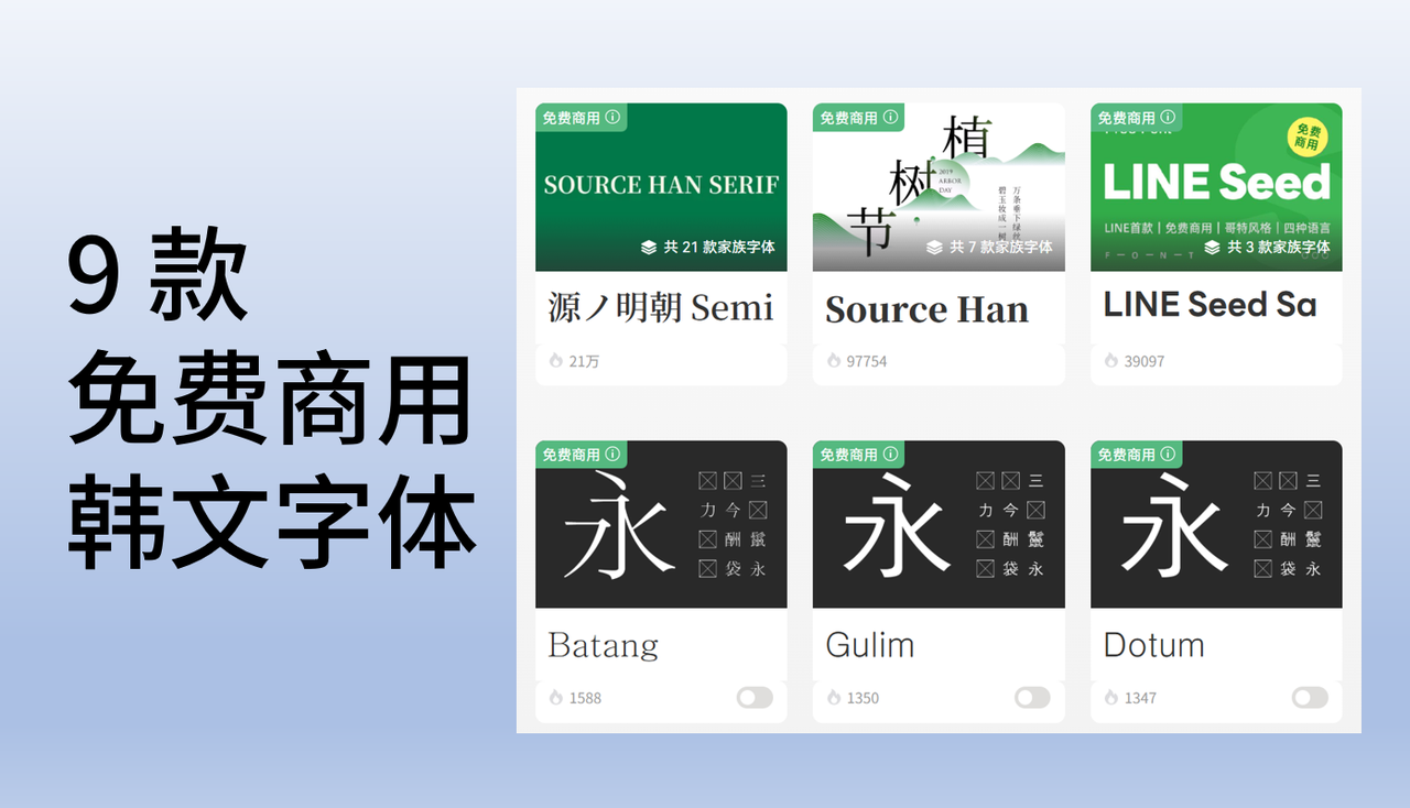 四、如何获取免费的 9 款韩文字体