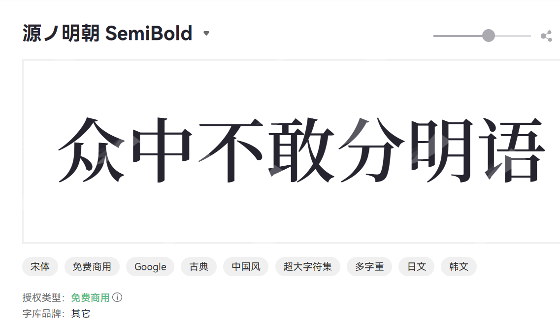 源ノ明朝是一款由Adobe与Google联合开发的开源衬线字体,涵盖中日韩三种文字,在众多韩文字体中,这款使用的人数比较高。