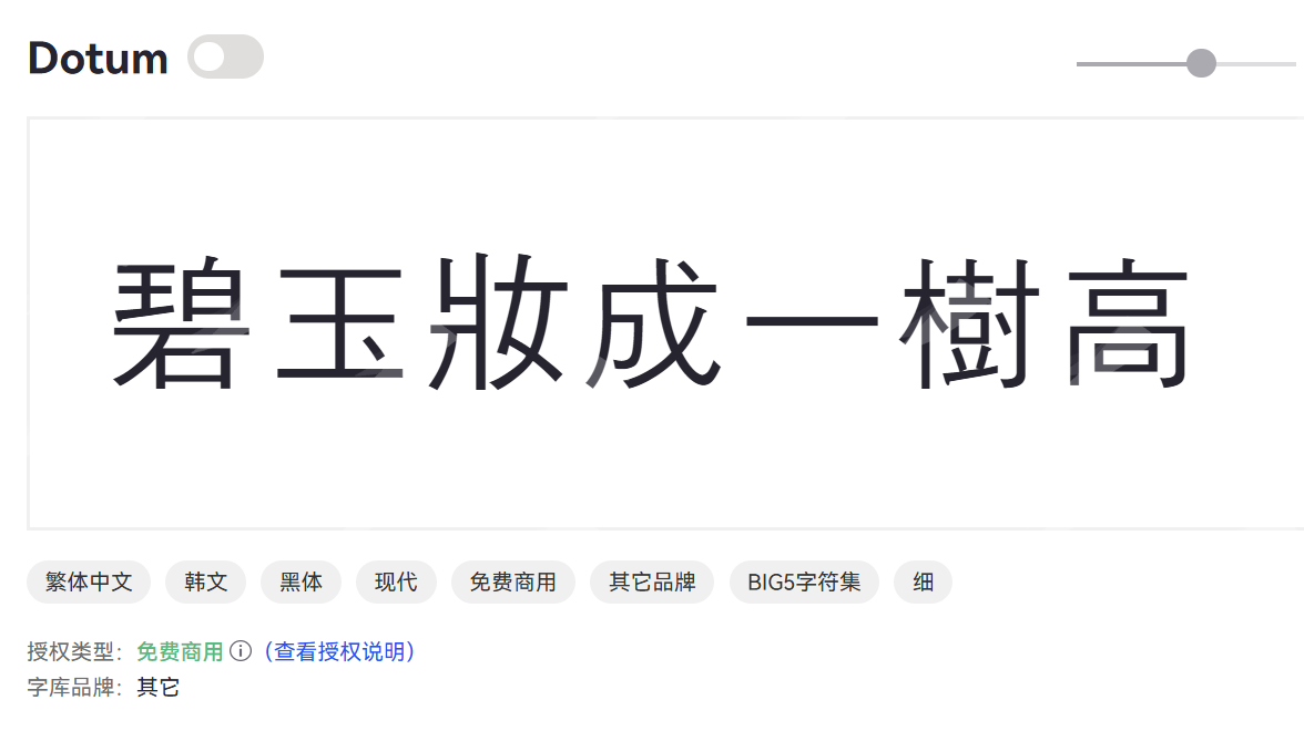 Dotum 是一款简洁现代的无衬线韩文字体,笔画均匀。Dotum 适合商务文档、网页排版及广告设计,字体设计注重清晰度和阅读效率,提升整体设计的专业感。