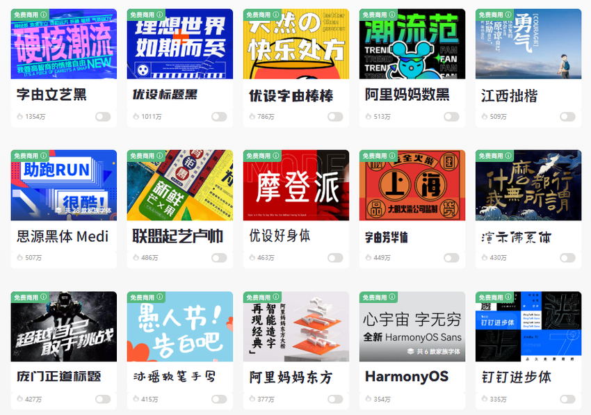 做为一个国内知名的字体网站,相信大家对字由都不算陌生了。如果你日常工作中会使用到像优设好身体,思源黑体,阿里妈妈惠普体等等这样的热门常用字体,那么一定要来体验一下字由。字由为设计师免费提供了 1000+ 款热门免费字体,基本上可以覆盖日常设计工作中的用字需求,并且均提供官方授权,省去你多网站查找字体的麻烦,用字时还没有侵权风险。