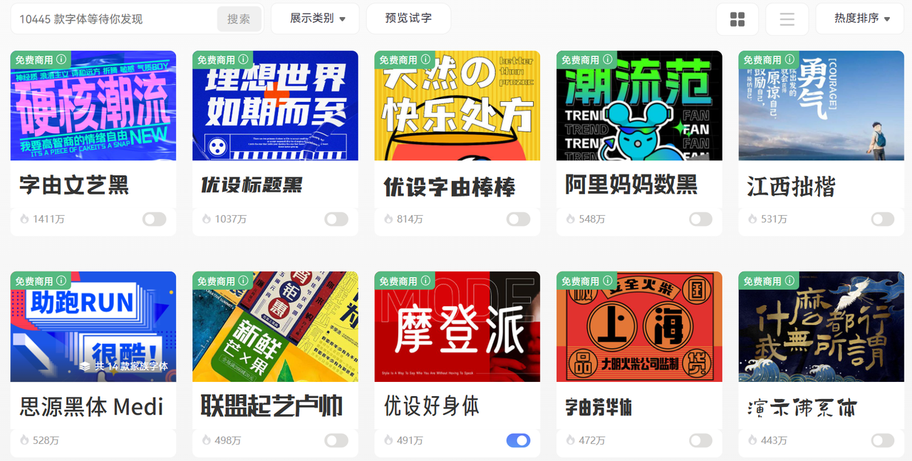 热门的中文免费商用字体: