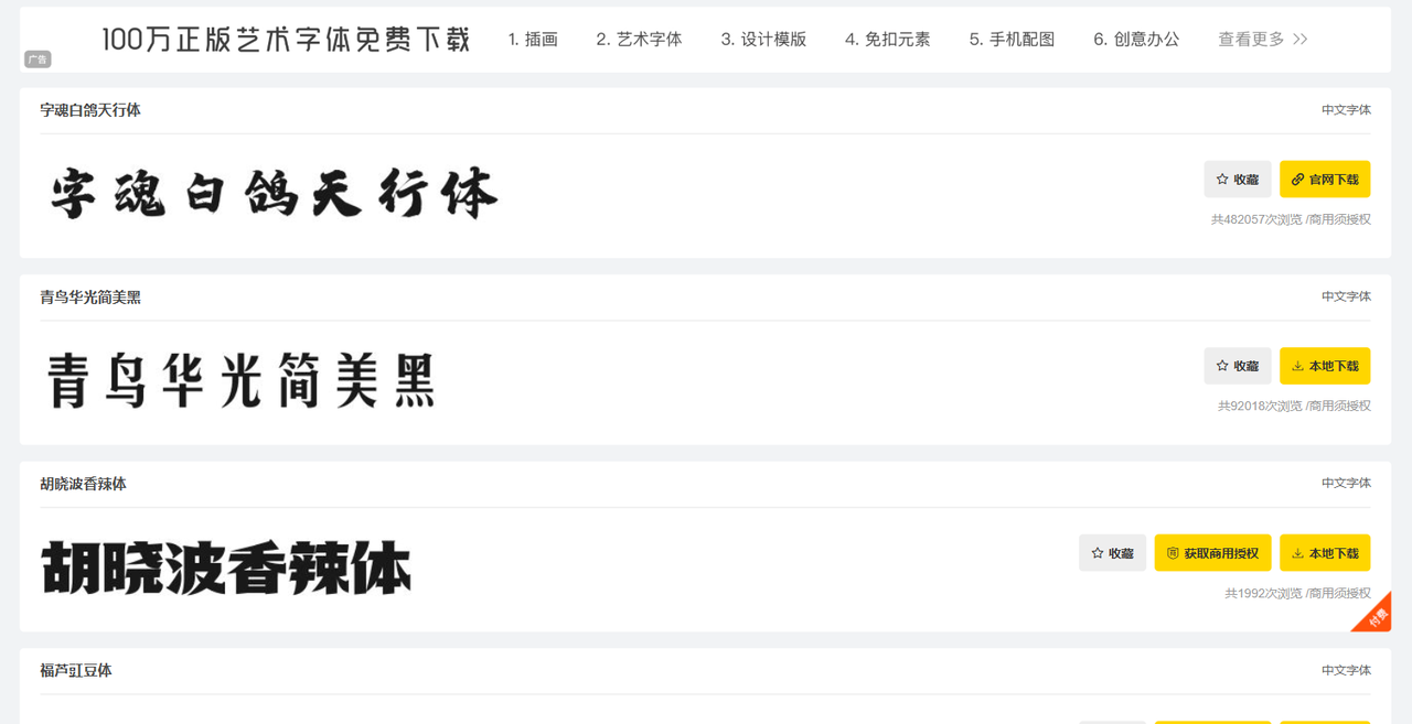 字体天下:多种免费商用字体,站内均可下载