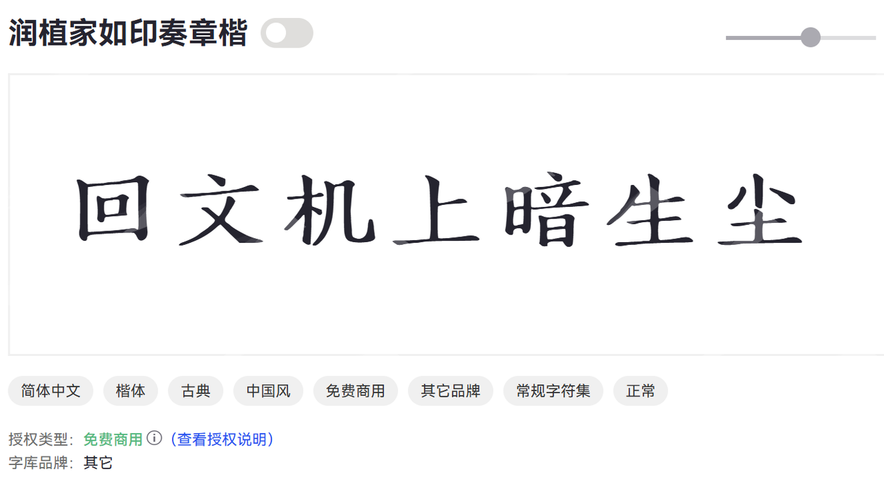 润植家如印奏章楷是一款独具匠心的中文字体,其命名精准概括了自身特色:**“如印”喻示其带有印章刻凿的古朴韵味和方正之美;“奏章”则点明其庄重、正式,蕴含古代官方文书的厚重感;而“楷”**则表明其以楷书为基础结构。