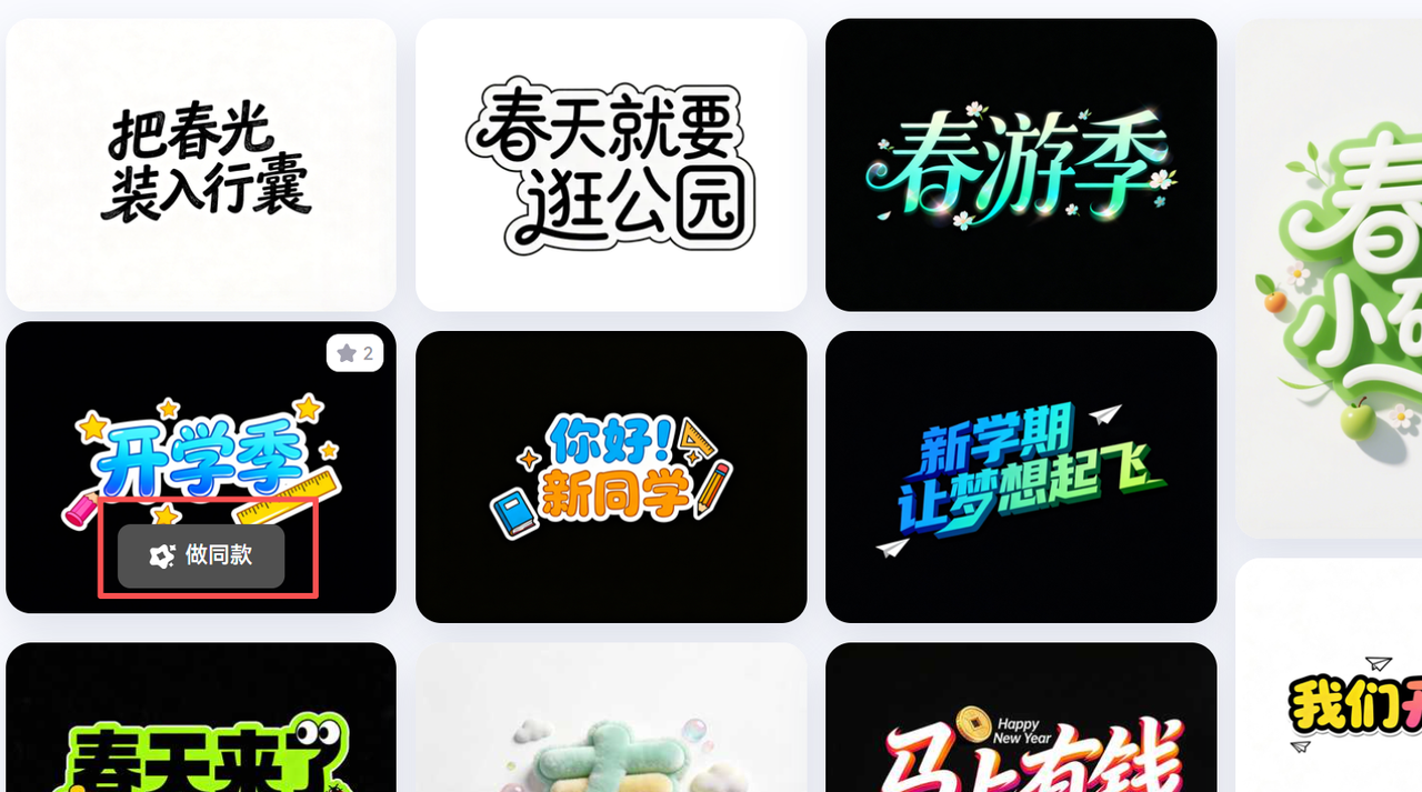 找到自己喜欢的艺术字模板,点击"做同款"