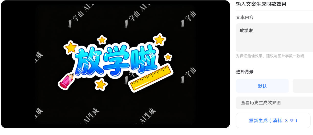 输入自己的文案,点击生成,等待一会儿,就会生成相同效果的艺术字了