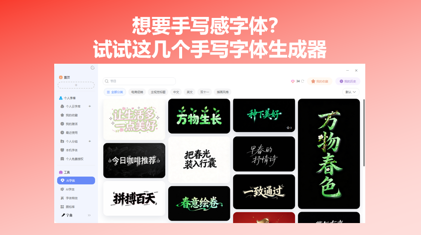 这几个手写字体生成器用起来都很不错,但是其中字由是我用的最多的,因为它既能生成手写艺术字,又能提供海量免费商用字体,还能一键应用到设计软件里。而且完全免费,没有水印,不用担心版权。再加上除了AI字体以外的其他AI工具也都很实用。如果你也想要手写感的文字,不妨从字由开始试试。打开网页,搜“手写”,选个模板,填上字,几十秒就可以拥有了。