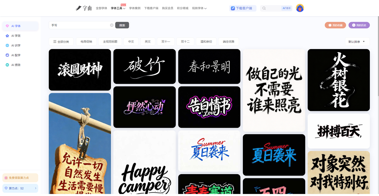 很多人知道字由是字体库,上万款字体可以使用。但很多人不知道,字由的“AI字体”功能,本身就是一款超级好用的手写字体生成器。你不需要下载任何字体,也不用装软件,打开网页就能用。