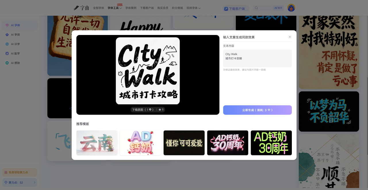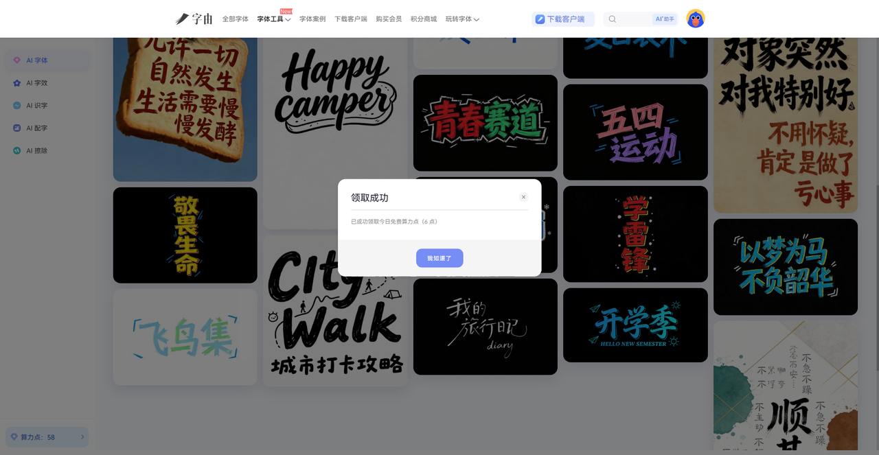 而且字由每天都会每天送免费算力点,日常试用完全够用。