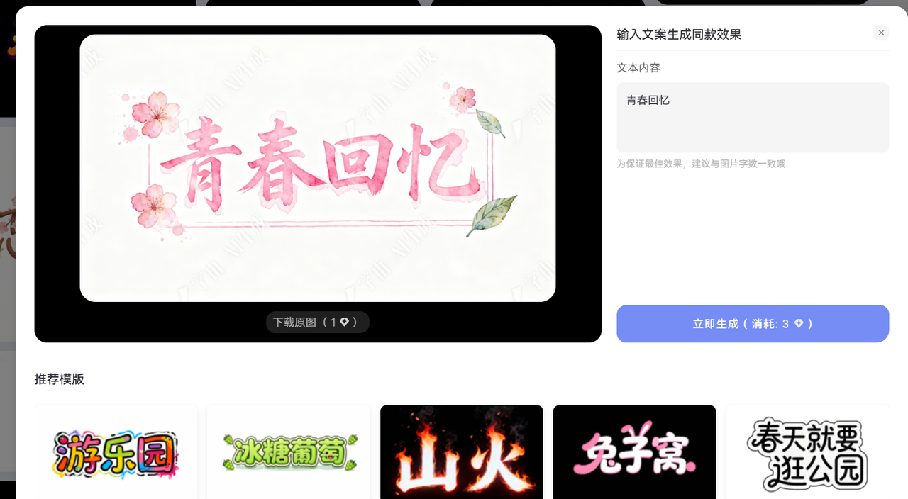 - 核心优势就是速度!你只需输入文字,选择一个喜欢的预设样式,几秒钟内就能看到效果并下载。