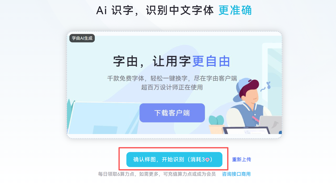 访问功能页面链接:字体识别-在线免费识别图片中的字体-字由