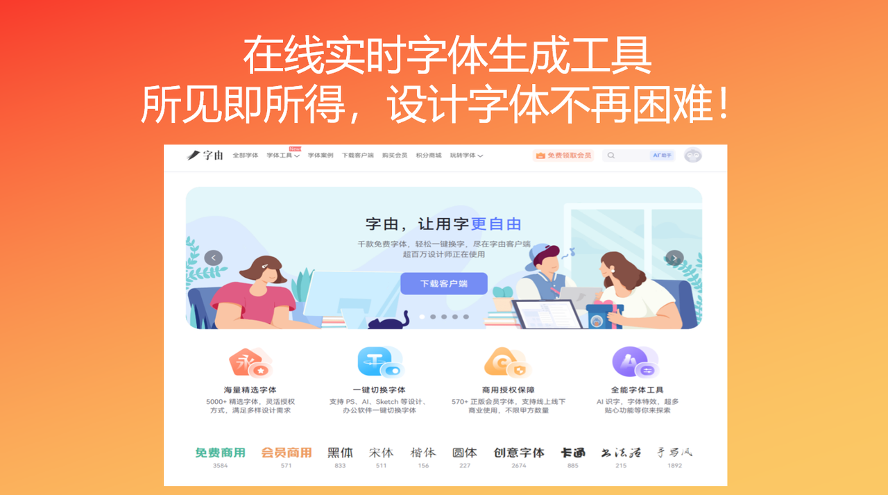 做设计的时候,你有没有过这样的体验:灵感来了,想试一款字体,结果要先去网上搜、下载、解压、安装,再重启软件才能看到效果。等你折腾完,灵感早跑没影了。更别说试第二款、第三款,时间就这么一点一点被吃掉。如果有一个工具,能让你在输入文字的同时,实时看到不同字体的效果,你肯定会心动。字由的AI字体功能,就是这样一个在线实时字体生成工具。它把“选字体”这件事,从繁琐的下载安装,变成了简单的点一点、看一看。今天这篇文章我会教大家如何使用字由的AI 字体功能。