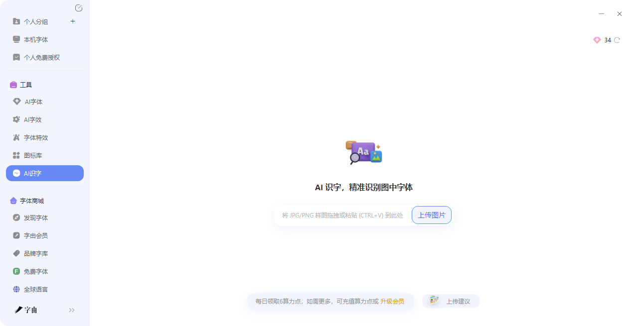 - AI识字:看到一张海报上的字很喜欢,但不知道是什么字体?截图上传,AI帮你识别。识别后可以直接在字由里找到同款或相似字体。