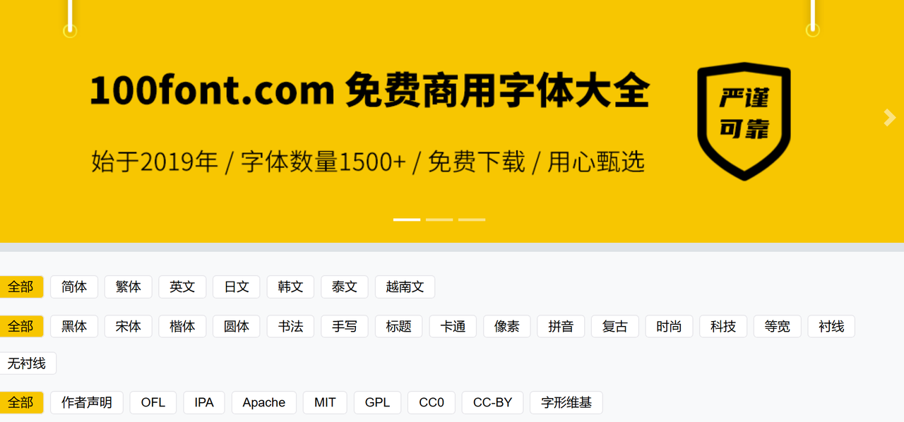 100font网站的界面特别简单,没有花里胡哨的装饰,也没有烦人的弹窗广告,打开就是字体分类,新手也能快速上手。它支持按关键词、字体风格搜索,还能直接预览字体效果,比如你想找手写体,搜一下就能出来所有可用的。字体种类也很全,中、英、日、韩字体都有,既有日常办公能用的简约款,也有书法体、像素体这种有个性的创意款,都是热心设计师无偿分享的,个人用、小微企业商用都没问题。