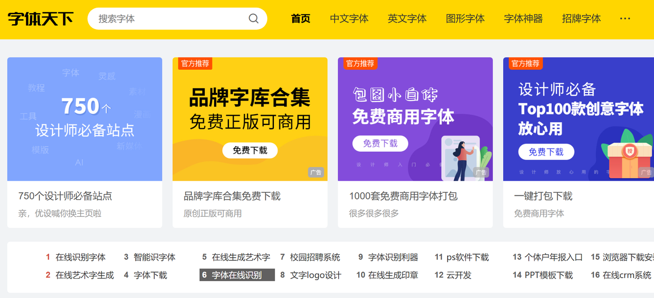 字体天下是我用来找小众字体、海量字体的宝藏平台,最大的特点就是字体多,打开就能下载,临时急需字体的时候,真的太方便了。不管是商务海报需要的正式字体,还是短视频字幕需要的可爱字体,甚至是节日宣传需要的装饰性图形字体,在这里都能找到,图文店老板也经常用它来解决商用字体需求。这里提醒大家一句,因为它字体太多,有一部分只能个人非商用,下载前一定要看清楚版权说明,认准“永久免费商用”的标识再下载。