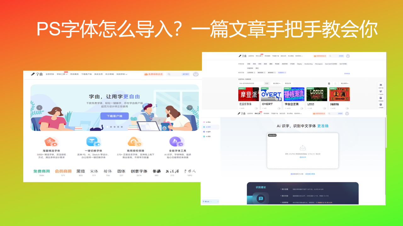 网上搜索“PS字体怎么导入”,出来的教程乱七八糟五花八门,有的让你去控制面板找你的字体文件夹,也有的叫你怎么安装,有的甚至要麻烦到让你重启电脑。虽然整体上来看步骤不算多也不算难,但是如果每次都要这么折腾的话属实是有点难为人。那么今天的文章我不会和你讲那些老办法,而是要用到一个妙妙工具:字由。仅凭这一个工具基本上就可以解决字体设计和使用的全套流程,来手把手教你怎么导入 PS 字体,不用下载安装包也不用重启软件,点一下就能换字体,接下来就看看怎么具体实操吧!