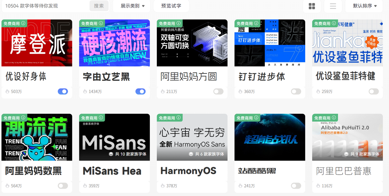 字库里也有不少独家或国内首发的字体,像站酷系列、锐字系列、方正部分字体都有收录,平时用到行业常见字体,基本不需要额外找来源。