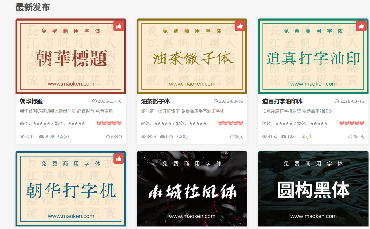 猫啃网在国内设计圈口碑一直不错,原因很简单:它收录的字体都经过版权筛查,明确标注"免费商用",省去了设计师自己去查字体授权协议的麻烦。字体数量没有字由那么夸张,但胜在精,很多独立设计师发布的原创免费字体都会在这里首发或归档。如果你在找那种"别人用烂了的黑体之外"的差异化中文字体,猫啃是值得字体下载大全网站。