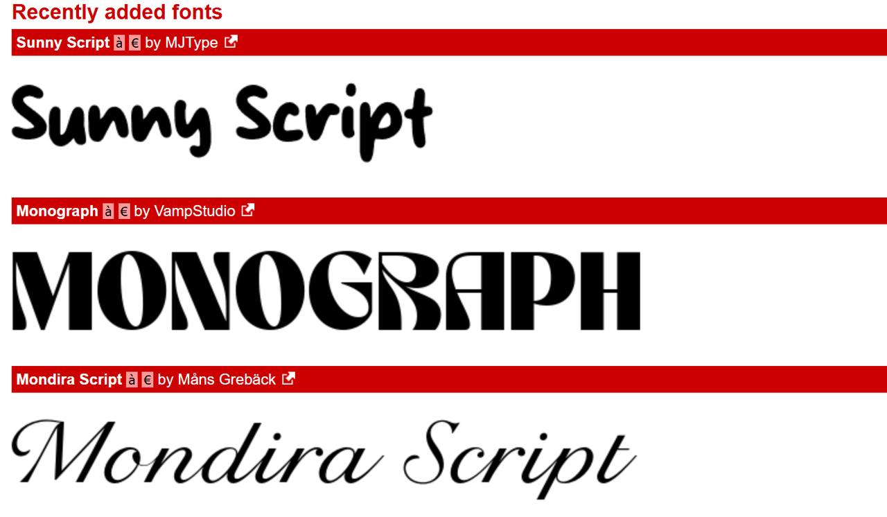 Dafont 是老牌英文字体聚合站,十几年前就已经是设计师常驻的地方。风格极其多样,像素字体、涂鸦字体、科幻字体、哥特体……每款字体的授权类型不同,页面上会标注"Free""Free for personal use""Shareware"等,商用之前一定要点进去确认授权协议,"Free"不代表可以商用。