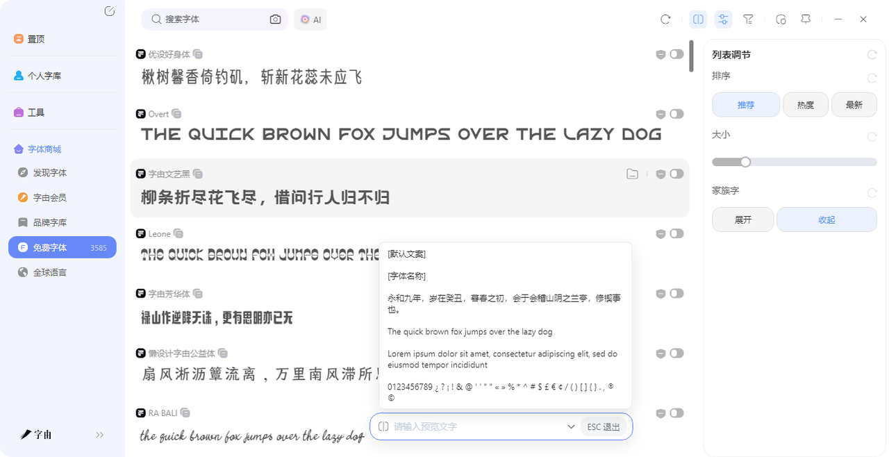 字由是我用过最省心的无版权免费字体工具。它把“找字体”这件事,从“到处搜、下载、安装、重启”压缩成了“点一下筛选、看预览、一键应用”。