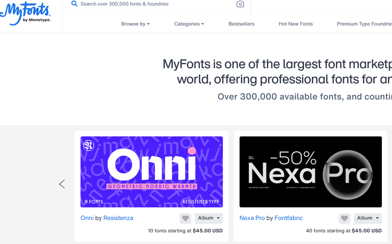 这是我心目中的“字体超市”,资源极其丰富,更新速度也很快。如果你在寻找特定风格或者某个设计师的作品,这里通常不会让你失望。它还有一个非常强大的搜索功能,可以让你根据各种条件来筛选字体。虽然价格偏高,但其专业性和全面性确实是顶级的。
