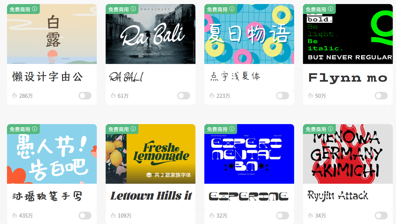 作为常年用Windows做设计的老用户,字由网是我电脑里常年收藏的Top1字体网站,也是最推荐给新手的一个windows字体下载网站——它完美避开了多数字体网站的痛点,而且适配所有Windows系统(Win7/10/11均支持)。字由网的字体资源非常丰富,不管你是办公、设计还是娱乐,都能精准找到对应字体。