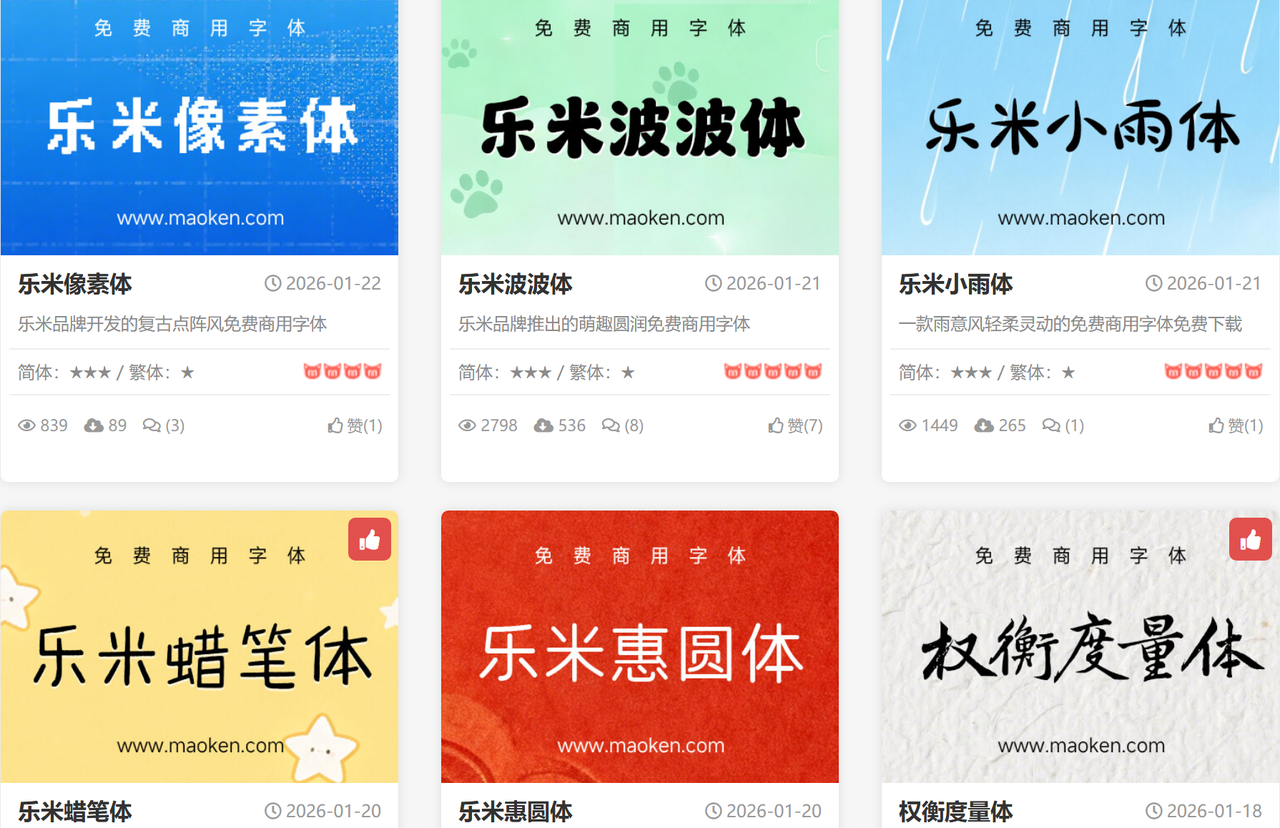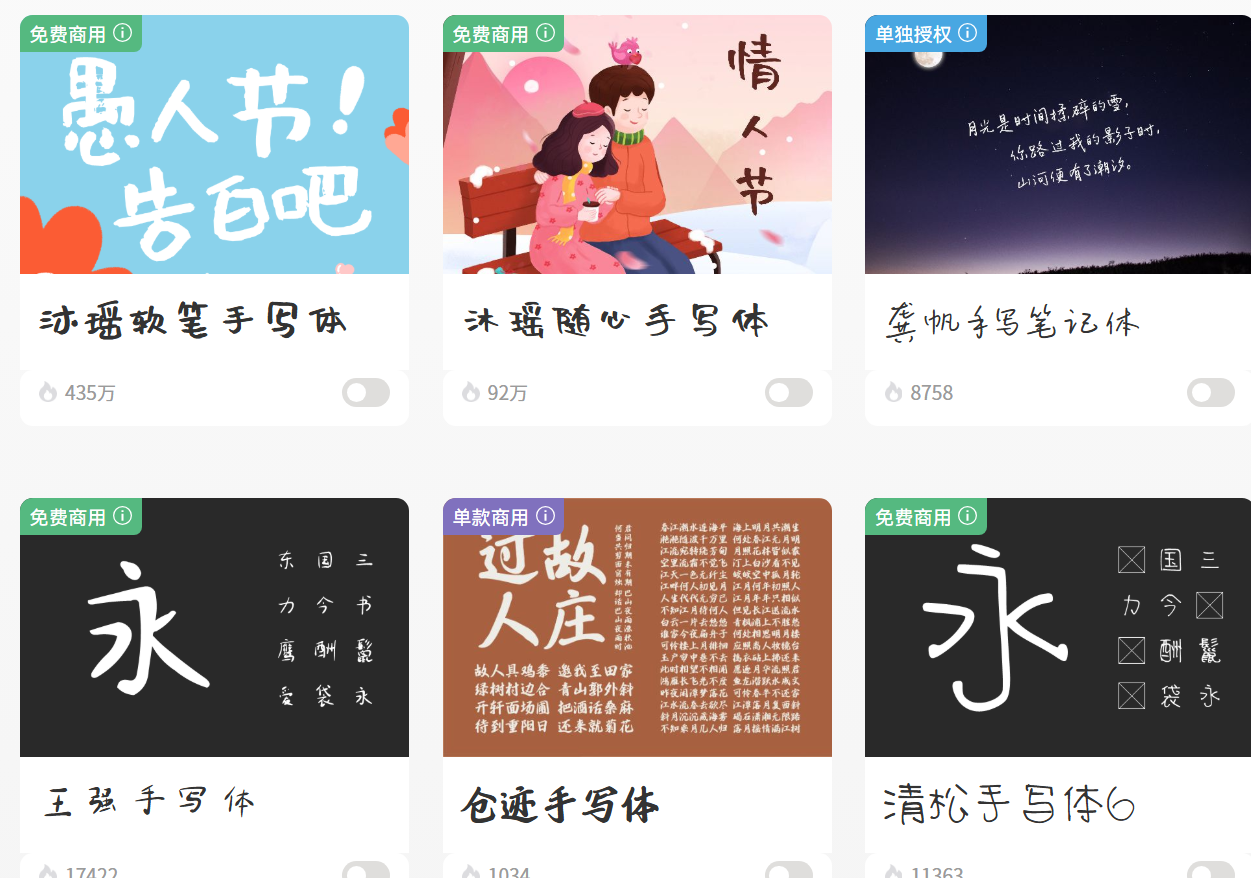 如果你偏爱手写体,那猫啃网绝对能满足你,它是国内专注手写体的适配Windows全系统字体网站,风格温柔治愈,实用性拉满。在每款字体上都会标注是否为免费商用字体,而且它的界面干净简洁,分类清晰,可按“手写体风格”“是否商用”筛选,找字体效率很高。
