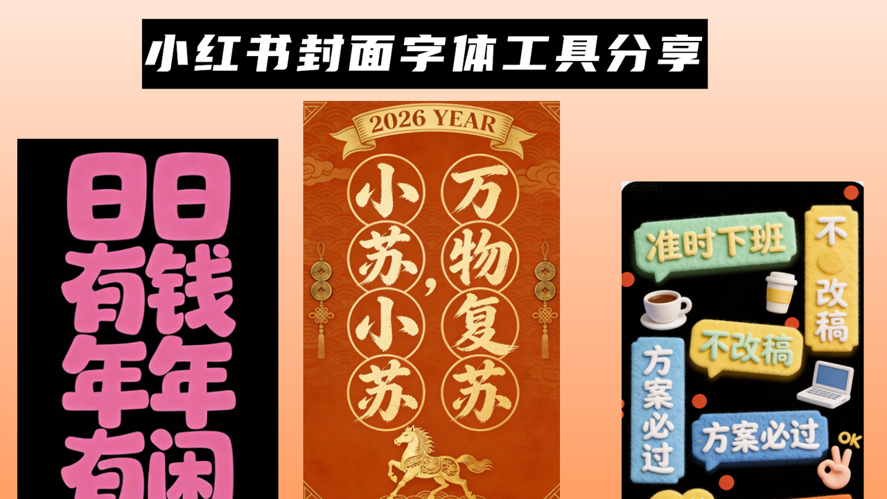 其实做小红书封面字体,核心根本不是搞复杂设计,选对和自己赛道匹配的工具,不用花太多时间,就能拿捏封面流量密码。以上4款工具都是我亲测好用的,各有侧重,新手可以按需选。