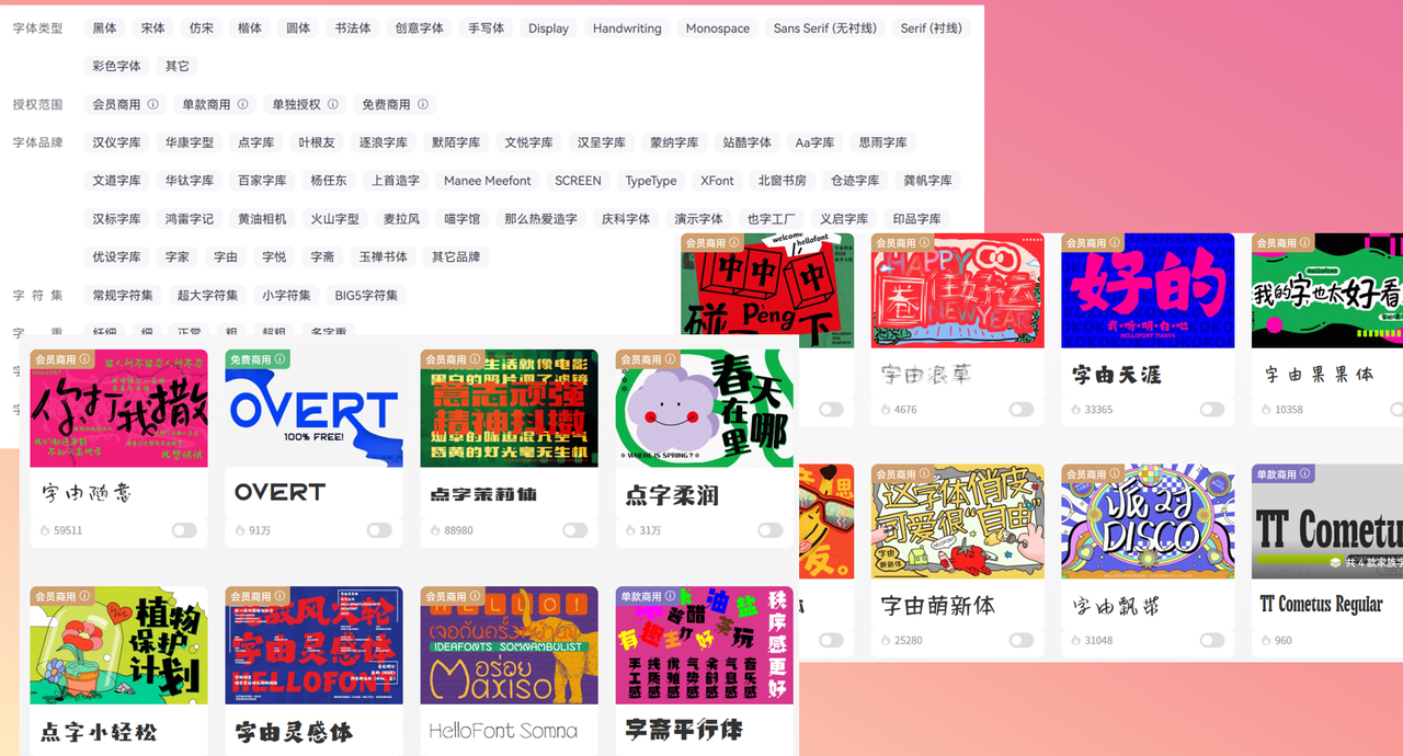 字由网绝对是新手首选字体工具,我当初刚做小红书时,第一款字体工具就用的它。大家可以选择两种方法制作小红书封面字体。我先为大家介绍第一种,直接挑选字由网的字体。它的风格分类特别细,小红书上热门的手写风、复古风、卡通风、极简风全都有,不用反复调试,总能找到适配自己笔记赛道的字体。