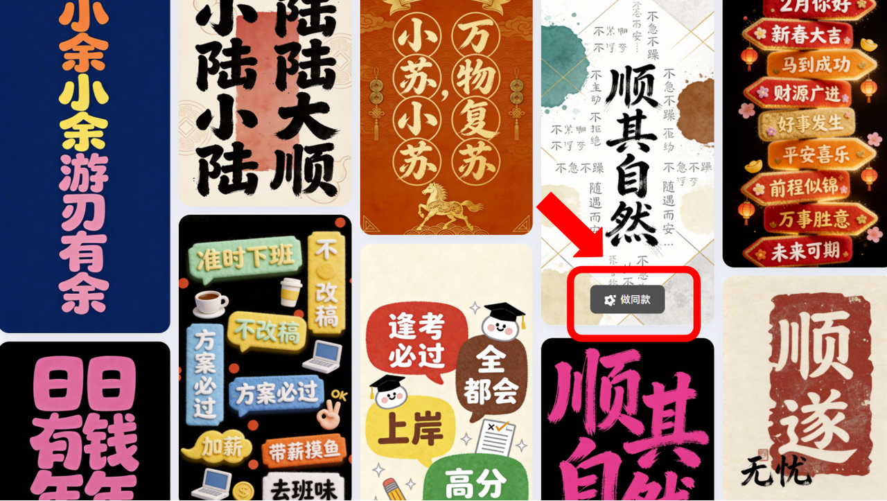 创客贴是我私藏的全能设计工具,主打零门槛操作,特别适合不想来回切换工具的新手,它不只是能生成小红书封面字体,还能直接搭配封面模板,完成一站式设计,不用单独做字体再拼封面,高效又省心。小红书上热门的风格全都覆盖,软萌卡通体、简约黑体、文艺行书、复古宋体应有尽有,兼顾实用性和颜值,而且不用担心版权问题,商用也靠谱。