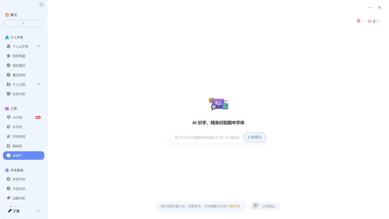 - AI字体:可能是智能推荐字体的功能,上传图片,AI自动识别图中的元素,推荐最适合的字体。