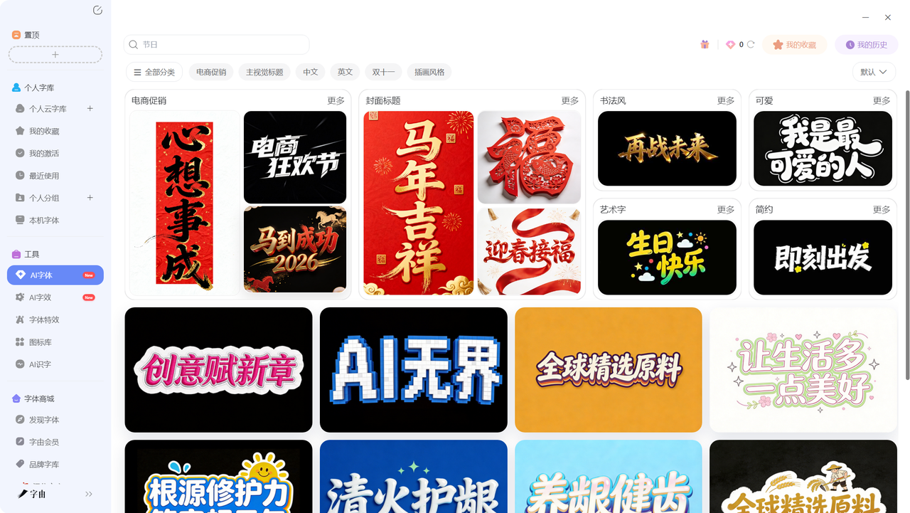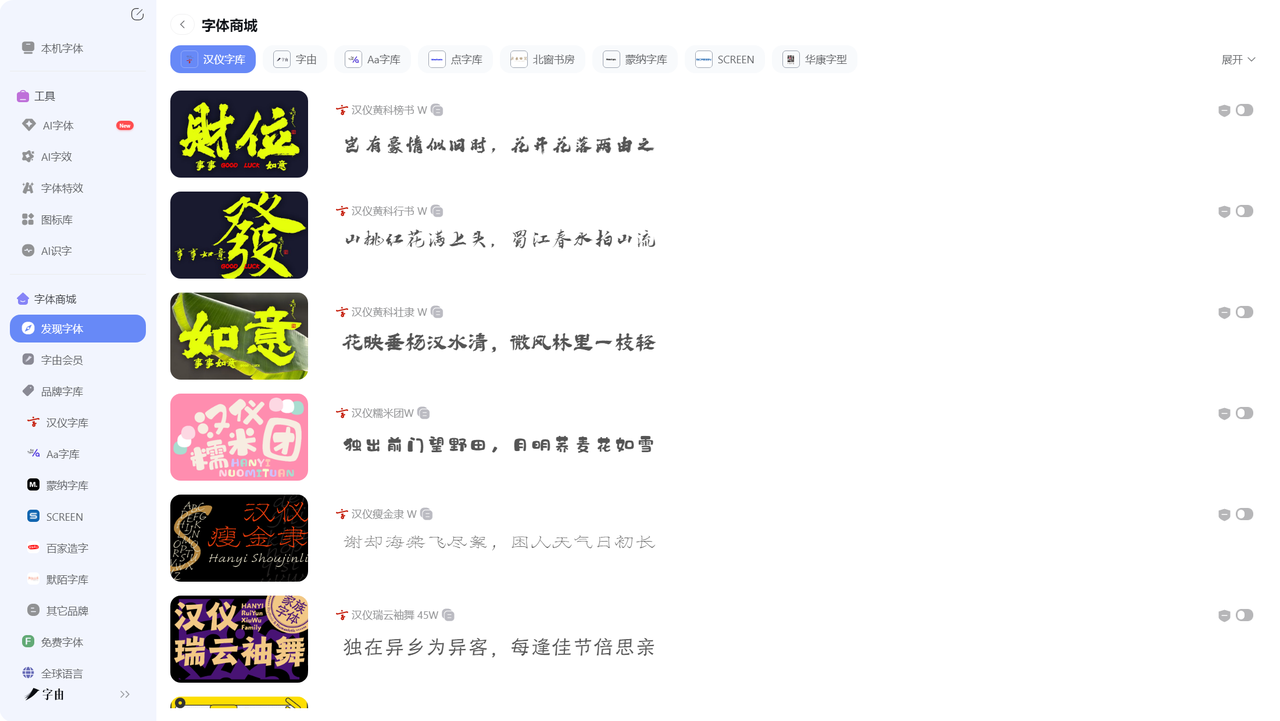 - 品牌字库:汉仪字库等官方合作品牌字体专区。