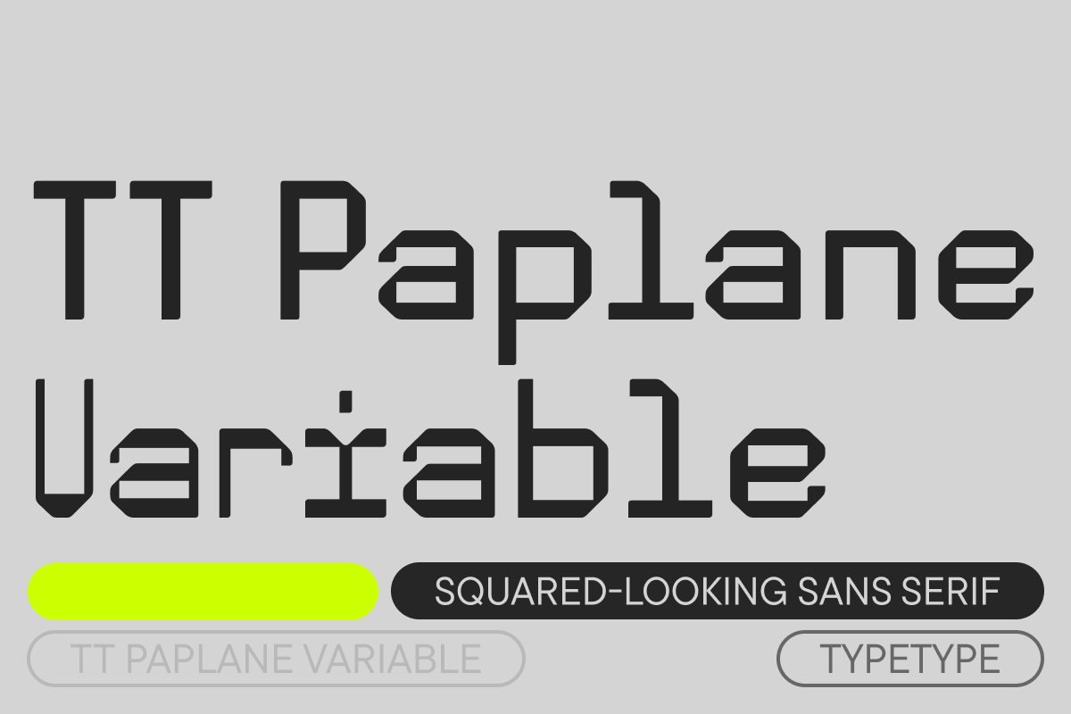 TT Paplane is a squared-looking display sans serif. Its name, Paplane, comes from the phrase “paper plane.” This embodies the core idea of our font: the logic of letters is built in a way that makes them look like they are folded from a paper strip. The unusual features of TT Paplane will shine best on posters and packaging, implemented into branding, and as an eye-catching element on websites and apps.