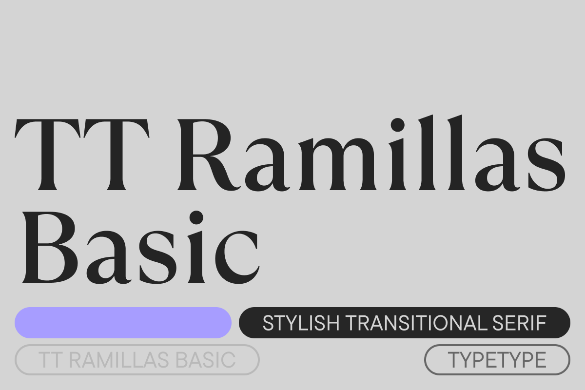 TT Ramillas is a stylish transitional serif perfectly adapted to modern reality and requirements. The idea behind this project was to experiment: we aimed to craft a modern serif with precisely balanced details by rethinking traditional forms and meticulously designing each glyph. And we achieved it! TT Ramillas also includes decorative subfamilies, Outline and Decor, which work perfectly for headlines and eye-catching, accentuated short texts.