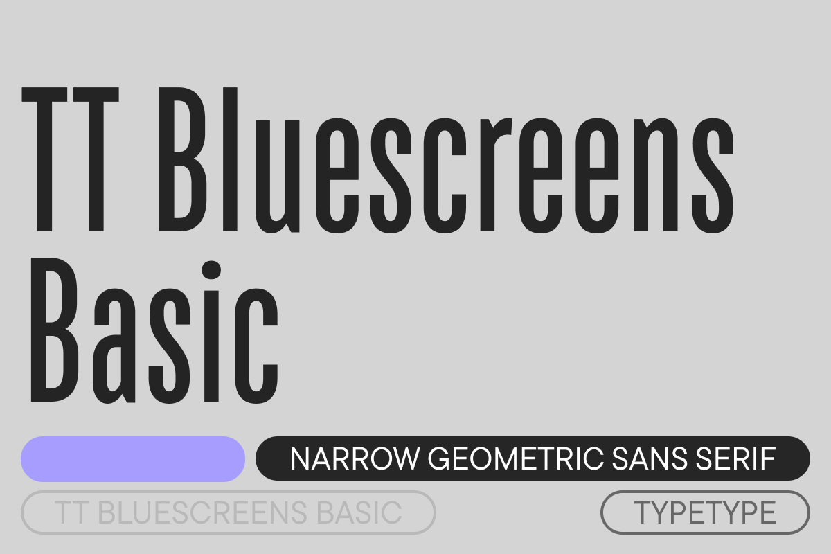 TT Bluescreens is a Neo-Grotesque typeface with narrow proportions and a calm, neutral yet distinctive character. This balance makes it highly versatile. The basic styles have neutral proportions that work well in headlines and remain legible in short text. At medium sizes, the font gains texture and can serve as a visual accent. In large sizes, it appears unusual and expressive while preserving excellent readability, making it suitable for a range of design tasks.