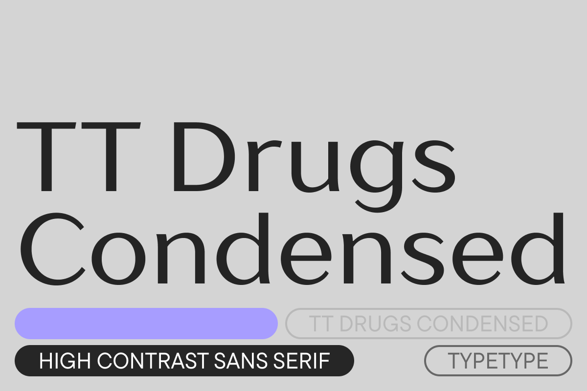 TT Drugs is a typeface that doesn’t feature serifs but stands out for its high contrast. Its narrow terminals lend an elegant and sophisticated appearance. The typeface’s name reflects the story of its creation: the font family was initially intended to be used for the pharmaceutical industry. However, in practical use, the font revealed its multiple dimensions and seamlessly blended with differently themed projects.