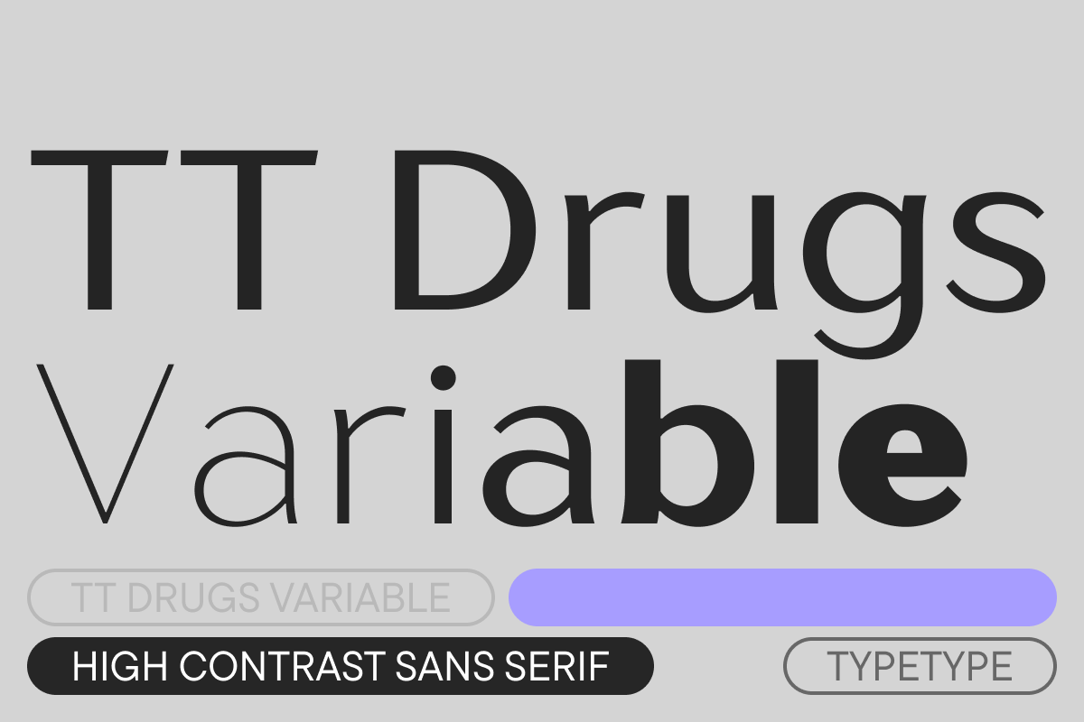 TT Drugs is a typeface that doesn’t feature serifs but stands out for its high contrast. Its narrow terminals lend an elegant and sophisticated appearance. The typeface’s name reflects the story of its creation: the font family was initially intended to be used for the pharmaceutical industry. However, in practical use, the font revealed its multiple dimensions and seamlessly blended with differently themed projects.