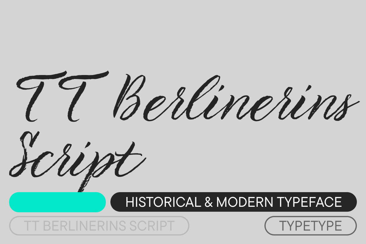 TT Berlinerins is a contrast pair of typefaces which is basically our tribute to Berlin. Just like in the city itself where historicity and modernity are intertwined, the elegant script in our font family symbolizes the modern Berlin, and the sans-serif inspired by the wood-type poster types of the first third of the 20th century is responsible for the historic component of the city.