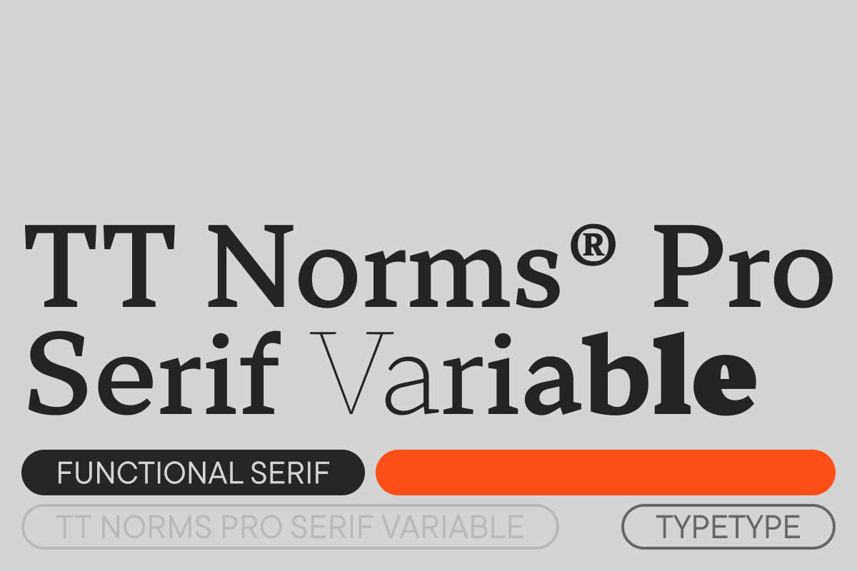 TT Norms® Pro Serif is a self-sufficient and elegant serif, neutral at the same time. It is easy to recognize due to its gentle proportion dynamics, open aperture, slanted oval axis, and low stroke contrast. TT Norms® Pro Serif is a functional serif based on our studio’s main bestseller—the versatile sans serif TT Norms® Pro. Together, they form an ideal font pair. Although these typefaces are made for each other, they can easily be used independently and paired with other fonts.