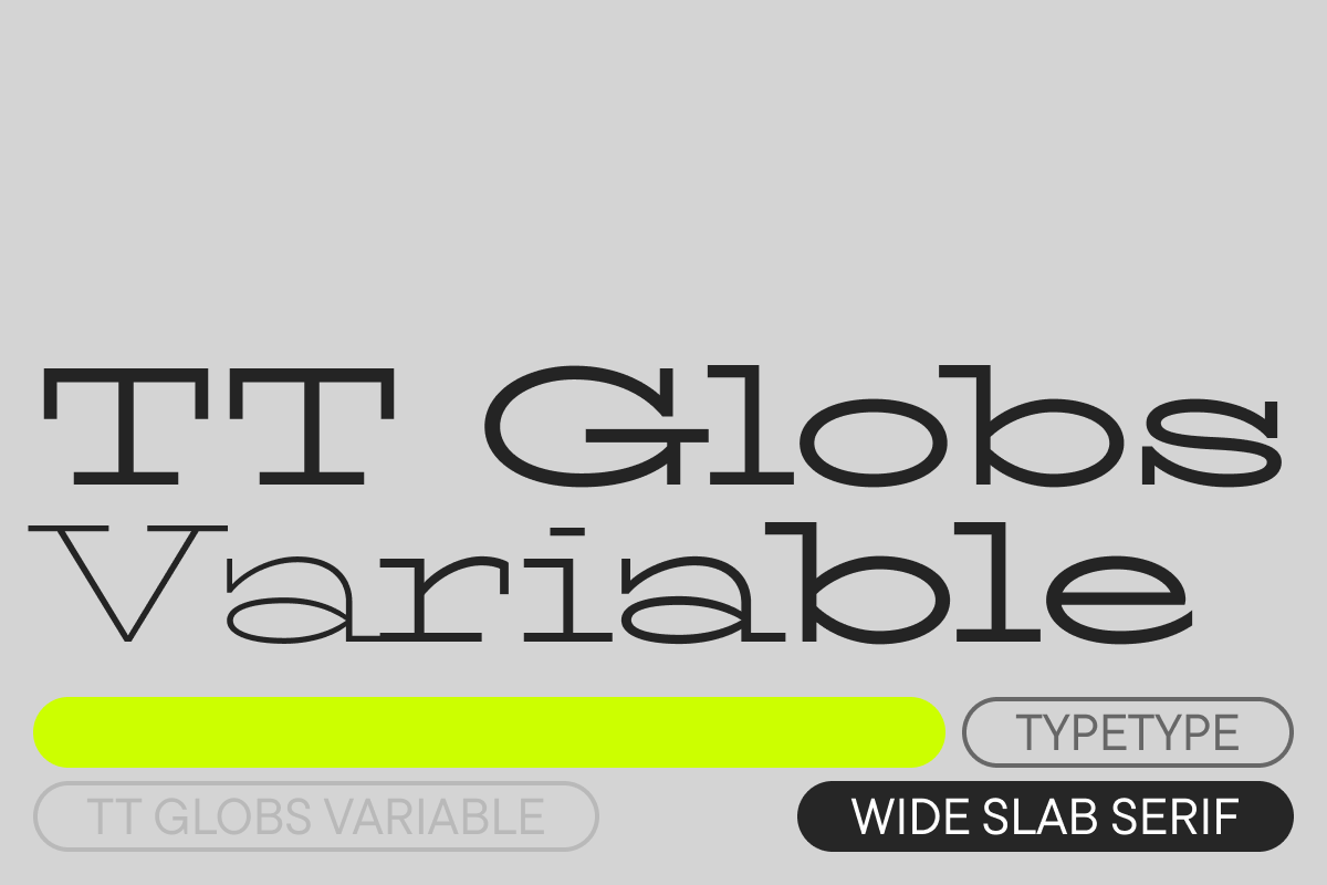 TT Globs is a stylish, wild-proportioned slab serif with a friendly nature and summer vibes. When we designed it, we aimed to combine historical slab serif forms with modern font design concepts. As a result, we got a relevant, fresh, and distinctive designer typeface. TT Globs is a typeface for special occasions that will match any “font wardrobe” and introduce more variety to the simpler options.