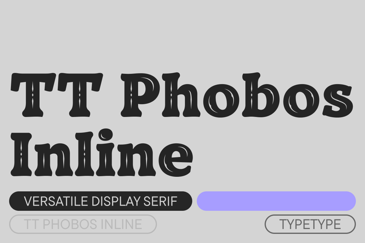 TT Phobos is a pliable display serif with a soft and gentle character. The features of the typeface are the moderate contrast between bold and thin strokes, pliable visual compensators, and the counter-clockwise bend of internal ovals. In addition to 6 weights and 6 italic, TT Phobos also includes two original decorative fonts: Inline and Stencil. Despite its pliability and display character, TT Phobos is dynamic enough and is well suited for text arrays even in large text blocks.