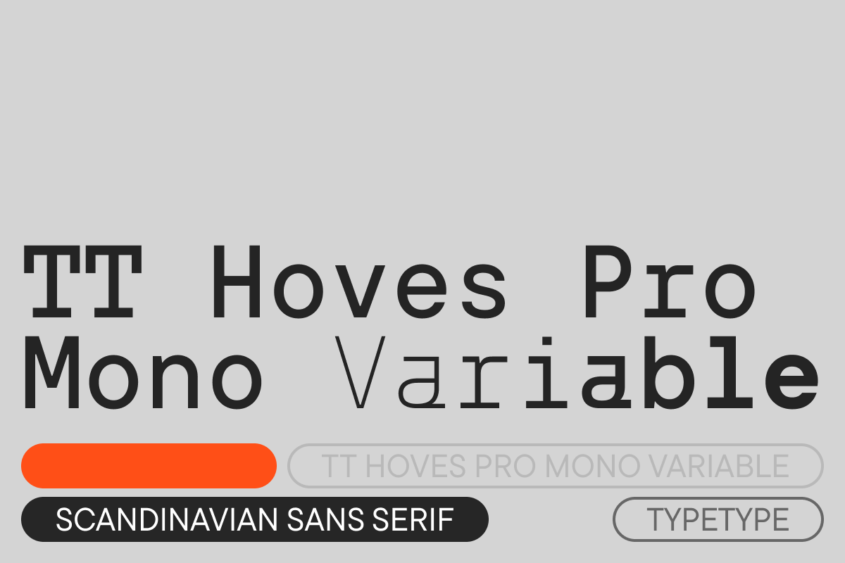 TT Hoves Pro is one of the studio’s bestsellers included in our core set of versatile fonts. It is a Scandinavian sans serif with a neutral but recognizable character. One of this font’s key characteristics is a visual lack of contrast. The name TT Hoves is formed by combining the initial syllables of the words "horizontals" and "verticals." It emphasizes the dominance of horizontal and vertical strokes in the font’s glyph design.