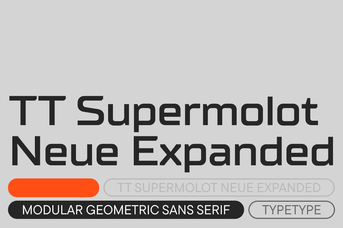 TT Supermolot Neue is an advanced, modular sans serif. It’s a powerful and dynamic font with a futuristic feel. Its squared forms give the typeface a robust appearance. However, the chopped angles of particular elements make it look flexible and ergonomic. The font features various distinctive details: beautiful junctions, peculiar “steps,” and angles in squared ovals. TT Supermolot Neue reveals its full potential in medium and large point sizes while staying readable in small point sizes.
