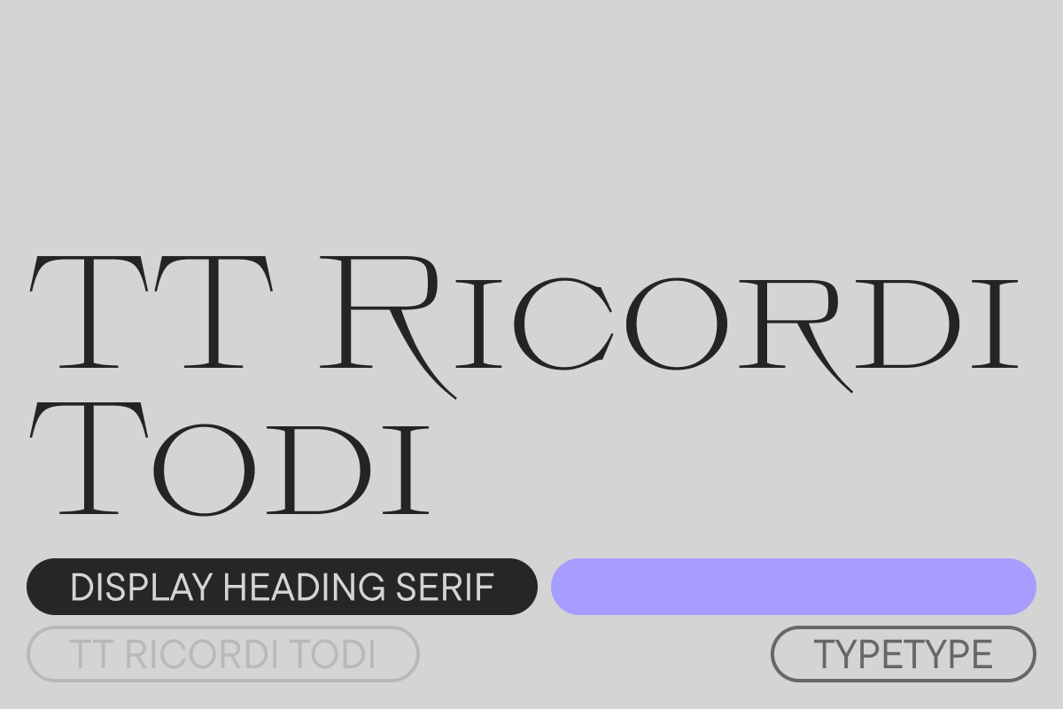 TT Ricordi Todi is a wide serif with a classic base and a contemporary nature. The font turned out to be refined yet sharp, and in places even pushy and aggressive. The project was based on plaques with engraved street names from the small Italian town of Todi. The main challenge was to decipher the characteristic features of the signs and emphasize them in a modern way.