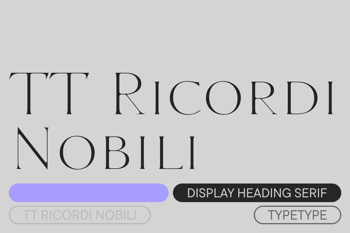 TT Ricordi Nobili is a display serif with a rich Roman ancestry and contemporary world views. It stands out from the crowd with its subtlety and elegance. The font was inspired by an inscription carved into the stone floor of a cathedral in Florence. Because people walked over the inscription, some of the letters got thinner and worn out over time. It is this feeling of disappearing or flickering elements that we wanted to capture and implement in the project.