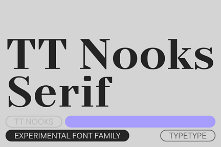 TT Nooks is an experimental font family that includes a high contrast serif, TT Nooks, and an upright italic, TT Nooks Script. Despite the difference in style, both subfamilies get along well, which is partially thanks to their similar proportions. The main subfamily is TT Nooks—a stylish high-contrast serif with a light touch of self-centeredness. The serifs in TT Nooks stand out especially visibly thanks to their geometric shape that resembles slippers.