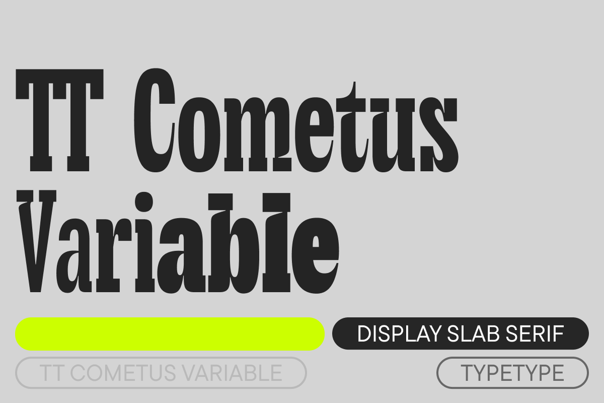 TT Cometus is a modern slab serif. The typeface’s name evokes the image of a comet—a powerful and weighty celestial body with a beautiful tail slicing through space at an incredible speed. This is the key to understanding this font. TT Cometus embodies a balanced personality: impressive and sturdy but energetic and dynamic at the same time. When designing this typeface, we aimed to incorporate heavy serifs typical for slabs into a modern and dynamic appearance.