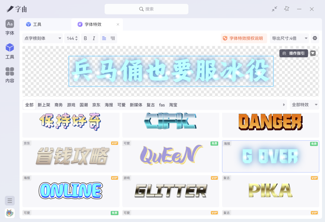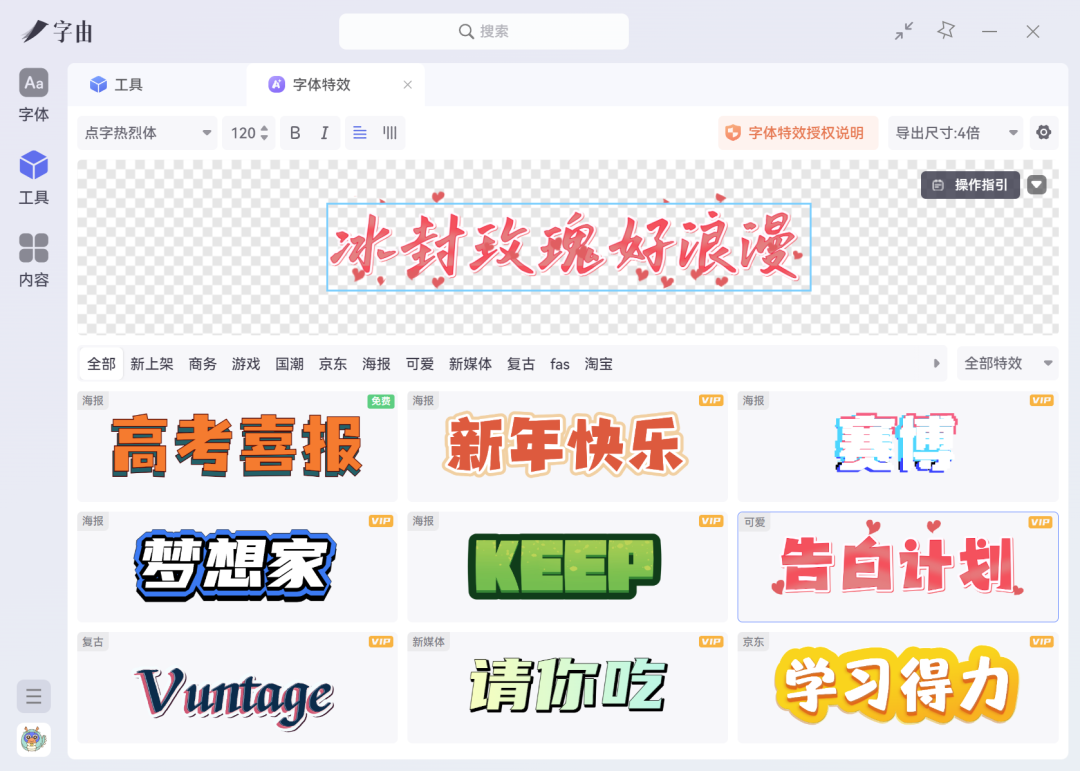 没关系,既然没条件,那就创造条件也要上!比如用省事的字体特效,小改一波,望图止渴!