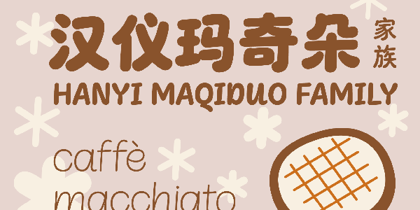 汉仪玛奇朵家族,带来如同玛奇朵口感一般丰富细腻的视觉体验:初见,字形轻巧玲珑、笔画柔软,好像漂浮的奶泡一样轻盈绵密;再品味,结构精致、细节巧妙,似是咖啡醇厚而回味悠长。汉仪玛奇朵家族包括由粗到细共8种字重,可以满足不同层级的排版需求,适用于儿童绘本和青少年读物、精致手作品牌、休闲餐饮、影视娱乐等多种使用场景。